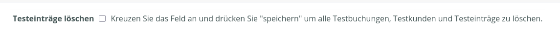 Wenn noch Testeinträge vorhanden sind, wird oben die Option „Testeinträge löschen“ angezeigt.